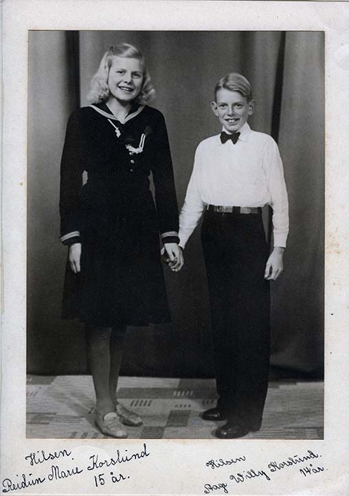 ![]() Reidun Korslund and Aage Korslund (Norway, 1945) Grandchildren of Julea and Bernhard |